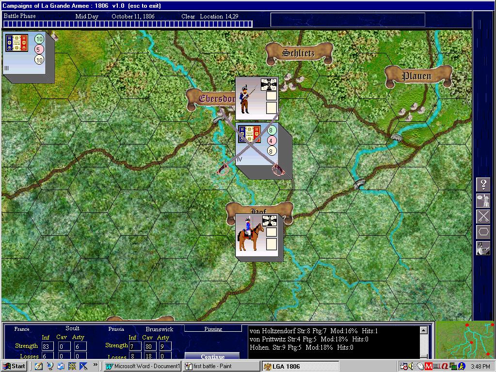 3 days of pitched fighting near Hof. Ney and Soult have taken the measure of Hohenlohe, though I will need to rest them for the forseeable future.